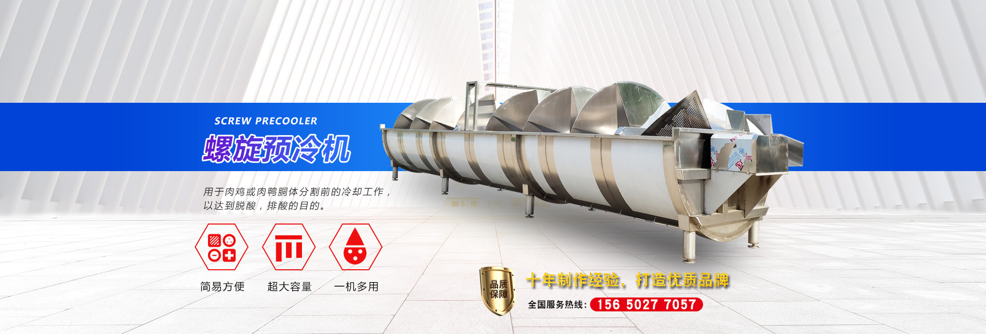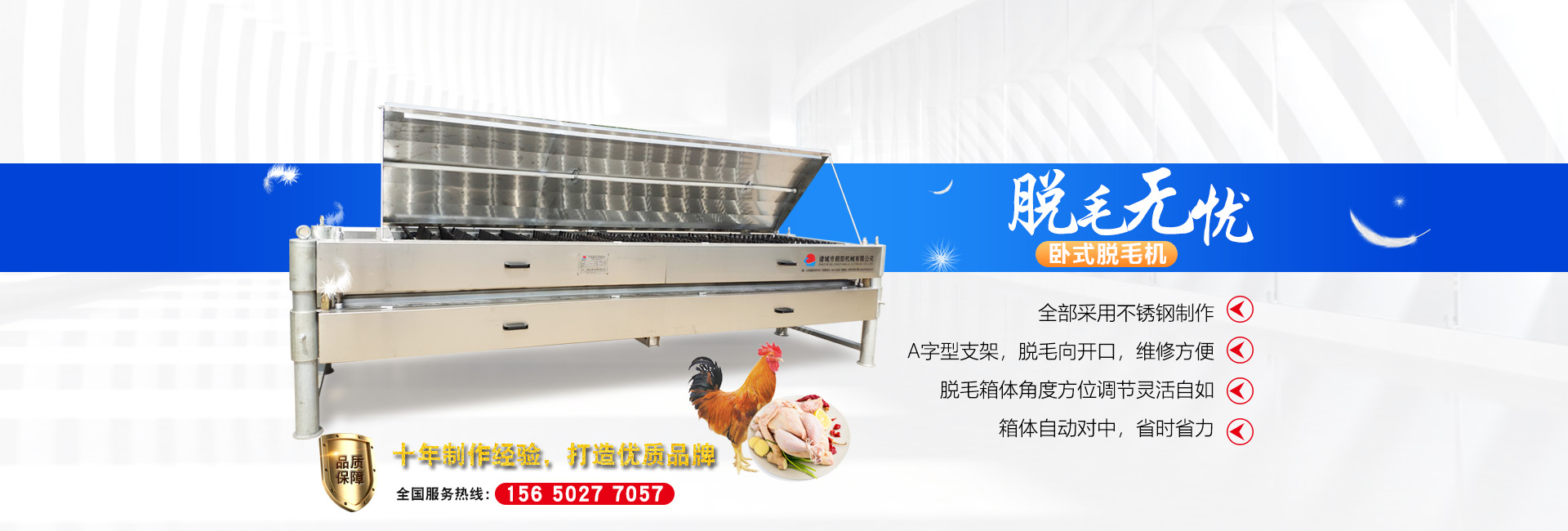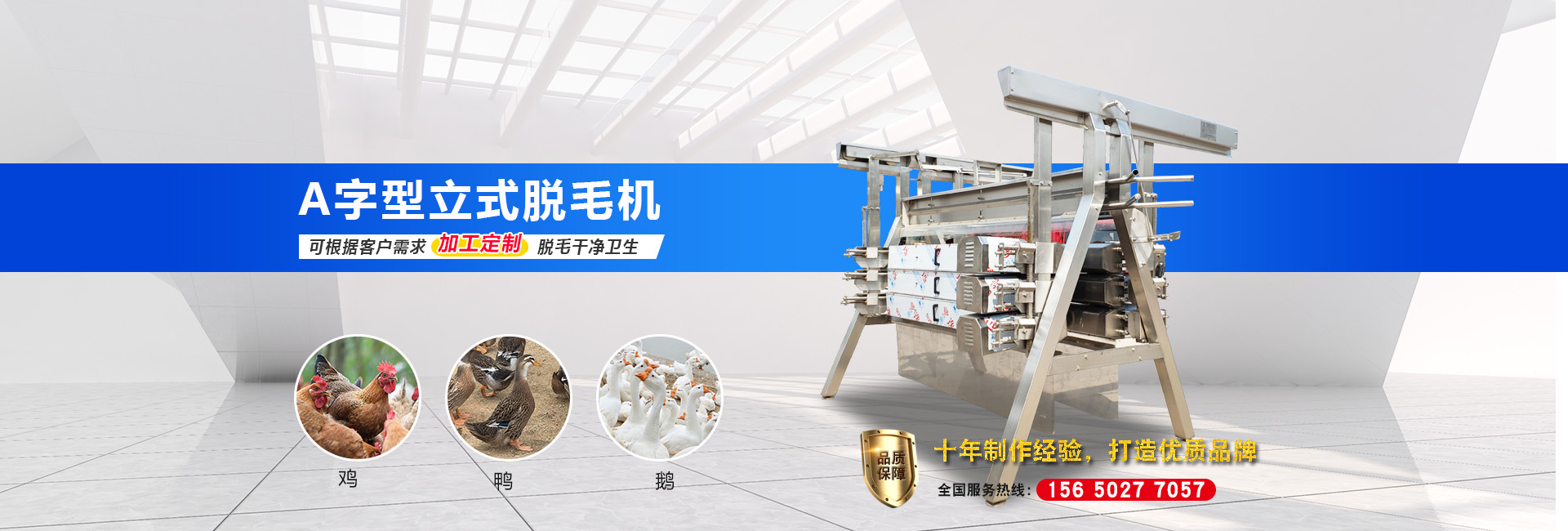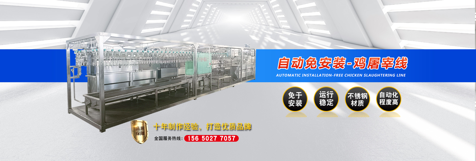 公司長期與國內(nèi)外屠宰加工企業(yè)合作,走引進(jìn)——消化——?jiǎng)?chuàng)新和自主研發(fā)相結(jié)合的道路,在國內(nèi)外同類產(chǎn)品的基礎(chǔ)上,不斷更新和改造。公司主要設(shè)備有:A字型立式脫毛機(jī)、臥式脫毛機(jī)、強(qiáng)力噴淋機(jī)、松毛機(jī)、浸燙池、螺旋預(yù)冷機(jī)、禽籠清洗機(jī)、電暈機(jī)、兔扯皮機(jī)、兔割前爪/后爪機(jī)、剝胗機(jī)、自動(dòng)洗鉤機(jī)、螺旋燙爪機(jī)、雞爪脫皮機(jī)、分割輸送帶等屠宰用設(shè)備。其中,公司獨(dú)力發(fā)明生產(chǎn)設(shè)計(jì)的“電動(dòng)調(diào)節(jié)脫毛機(jī)”及“自動(dòng)控水控溫浸燙池”順利通過知識(shí)產(chǎn)權(quán)局的實(shí)質(zhì)性審查。公司所生產(chǎn)的設(shè)備 可與國外同類產(chǎn)品配套使用,設(shè)備遠(yuǎn)銷阿爾及利亞、澳大利亞等中東、非州等并建立了長期穩(wěn)定的合作關(guān)系。